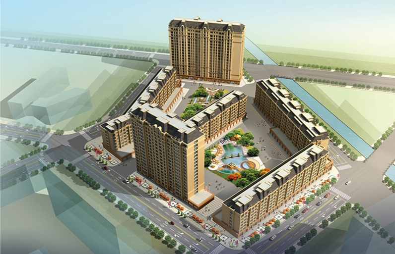 位于運(yùn)輸公司道東,原逸夫小學(xué)位置,2015年10月開工建設(shè),2016年底竣工并交付使用。項目建設(shè)用地17069.63平方米,共筑有3棟住宅樓、2棟商用樓,總建筑面積約6萬平方米,內(nèi)設(shè)大型婚慶產(chǎn)業(yè)園(喜事匯酒店)、生活超市、娛樂健身休閑會館及地下停車場等。